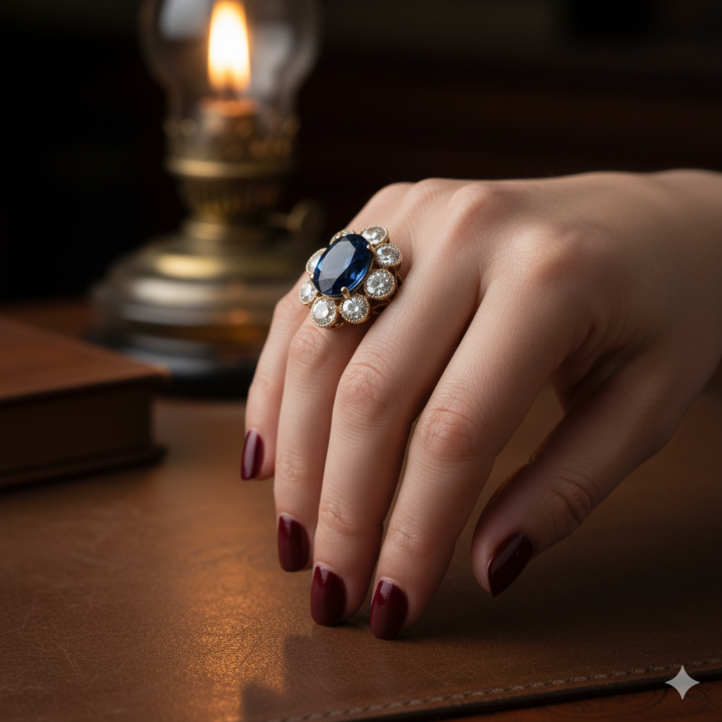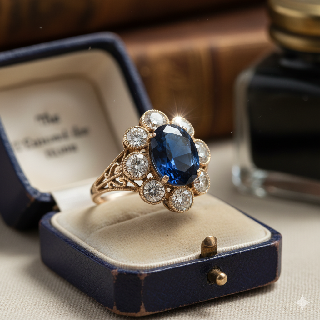 The Edwardian "Midnight Bloom" Sapphire Ring